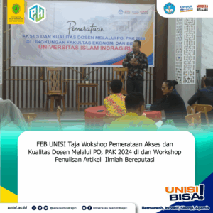 Tembilahan – Selasa 09 Juni 2024 dilaksanakan Wokshop Pemerataan Akses dan Kualitas Dosen Melalui PO, PAK 2024 di Lingkungan Fakultas Ekonomi dan Bisnis Universitas Islam Indragiri Tahun 2024 dan Workshop Penulisan Artikel Ilmiah Bereputasidi Lingkungan Fakultas dan Bisnis Universitas Islam Indragiri Tahun 2024 di X2 Tembilahan. Acara yang ditaja Fakultas Ekonomi dan Bisnis Universitas Islam Indragiri menghadirkan pemateri yakni Septa Diana Nabella, SE, MM dari Universitas Ibnu Sina dan Yandra RIbaldo, SE, MM dari Institute Agama Islam Abdullah Batam.