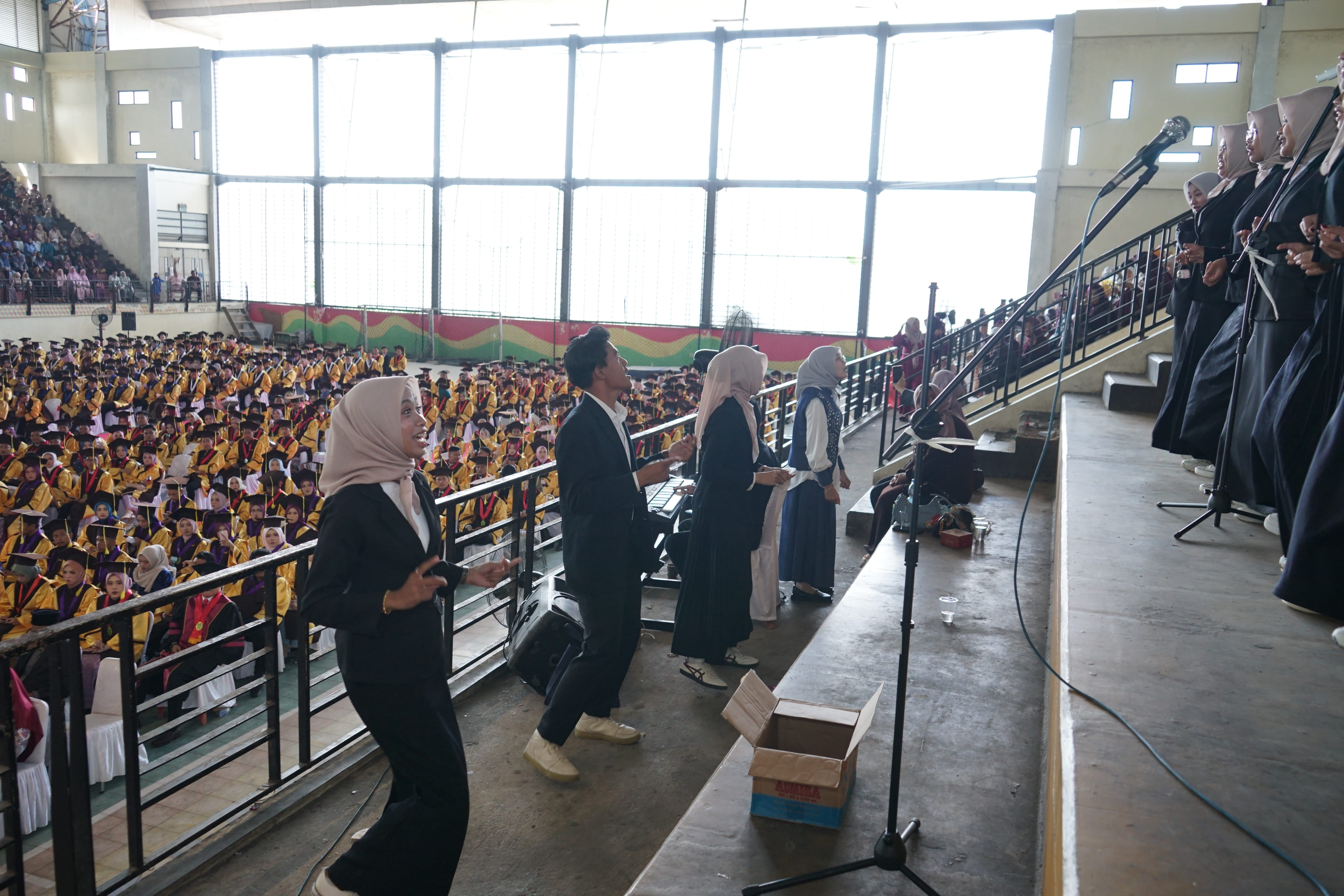 Penampilan tersebut mendapat sambutan meriah, harmonisasi suara yang indah, dipadukan dengan koreografi sederhana namun elegan, berhasil menciptakan suasana penuh haru dan semangat. Banyak wisudawan, orang tua, hingga tamu undangan yang tampak larut dalam alunan musik dan lirik yang dibawakan.