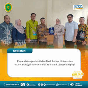 Universitas Islam Indragiri (UNISI) melakukan penandatanganan Kerjasama MoU, MoA dan IA dengan Universitas Islam Kuantan Singingi, (UNIKS) pada Selasa, 21 Januari 2025.