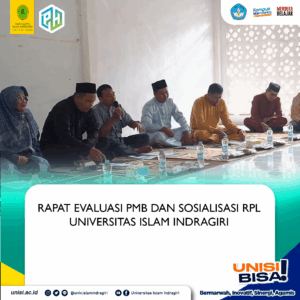 Tembilahan, 26 Juli 2024, dilaksankan rapat Evaluasi Penerimaan Mahasiswa Baru Universitas Islam Indragiri Tahun Ajaran 2024/2025 dan Sosialisasi Rekognisi Pembelajaran Lampau (RPL) di Mushallah Al- Muta’alimin Kampus Parit I Tembilahan Hulu. Kegiatan ini dihadiri oleh Ketua Yayasan Indra Education College beserta pengurus, Rektor dan wakil-wakil Rektor, Dekan, Ketua Lembaga, Ketua UPT dan Tenaga Pendidik (Tendik) di lingkungan Universitas Islam Indragiri.