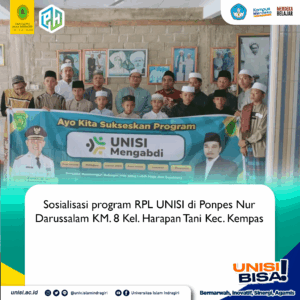 Dihari yang sama kegiatan Sosialisasi Program Rekognisi Pembelajaran Lampau (RPL) kembali dilakukan Sosialisasi program RPL UNISI disampaikan oleh Dekan Fakultas Ilmu Agama Islam UNISI Fiddian Khairudin, MA didampingi dosen Prodi Ilmu Al-Qur’an dan Tafsir Dr. Dewi Murni, MA, Amaruddin, MA dan Nasrullah, M.S.I serta dosen Prodi Manajemen Pendidikan Islam Dr. Maimunah, M.Pd.I