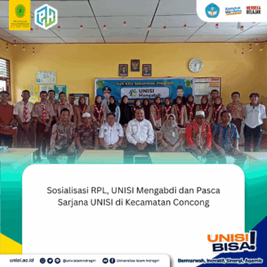 Sosialisasi dilakukan langsung oleh Wakil Rektor bidang Akademik dan Pengebangan Zainal Arifin, SE, ME, dan disambut langsung oleh Kepala SMAN 1 Concong Lyly Khairani, S.Si, MM dan Ketua PGRI Kecamatan Concong, Zainal Elman, S.Pd. Diharapkan dengan dilaksanakan sosialisasi UNISI Mengabdi ini, Majelis Guru, Tendik Serta Masyarakat Kecamatan Concong dapat memanfaatkan segala program dan kemudahan menempuh pendidikan tinggi di Universitas Islam Indragiri.